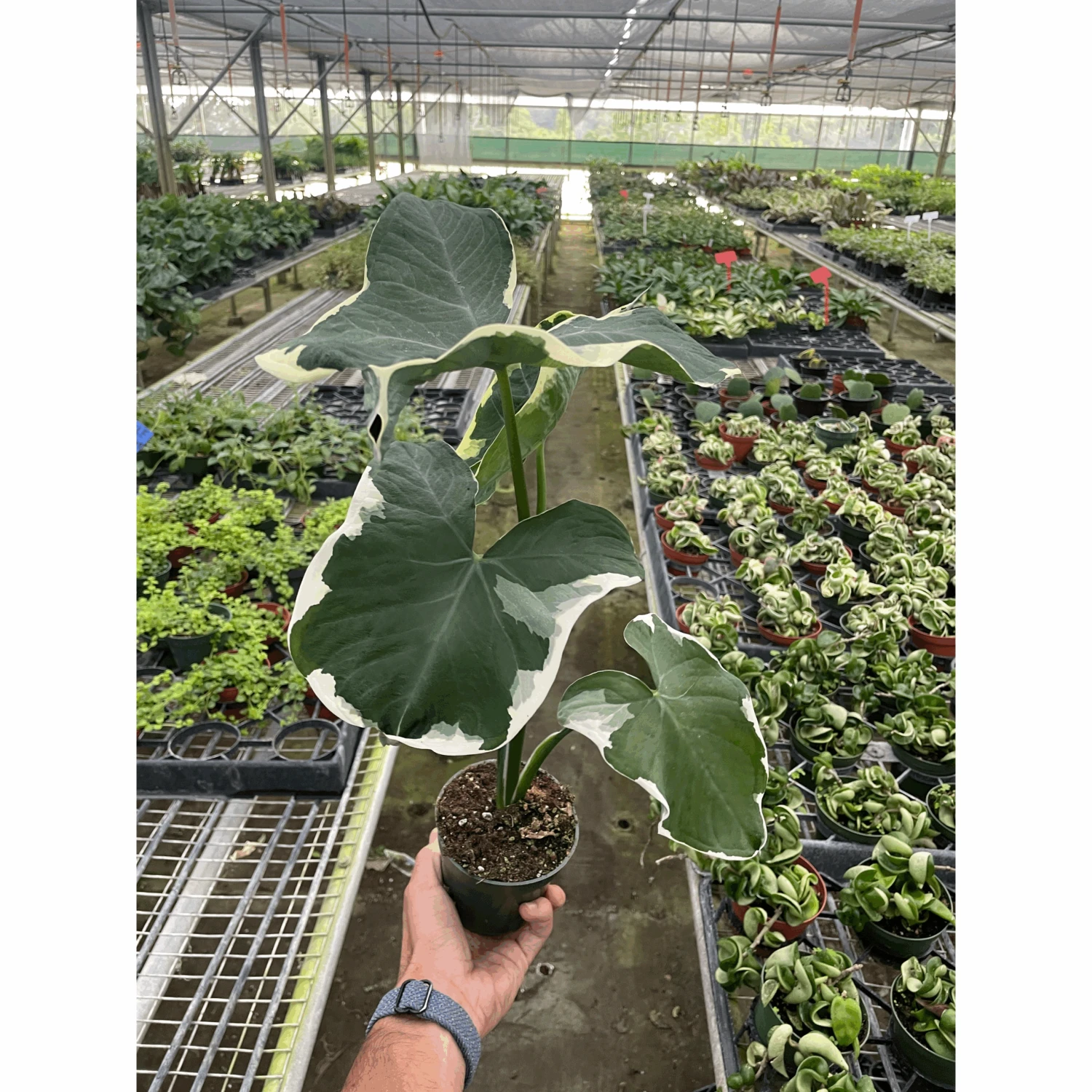 - Botanical Name: Xanthosoma sagittifolium ‘Variegatum Monstrosum’