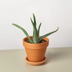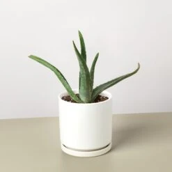 - Description: The Aloe Vera is a stemless succulent with thick and fleshy leaves that are lined with small teeth making it a great ornamental, low maintenance indoor plant which blooms a yellow tubular flower in the summertime. Native to the Arabian Peninsula, this plant is widely used around the world as its leaves are considered to be antimicrobial and has been used to treat burns as a topical medication.