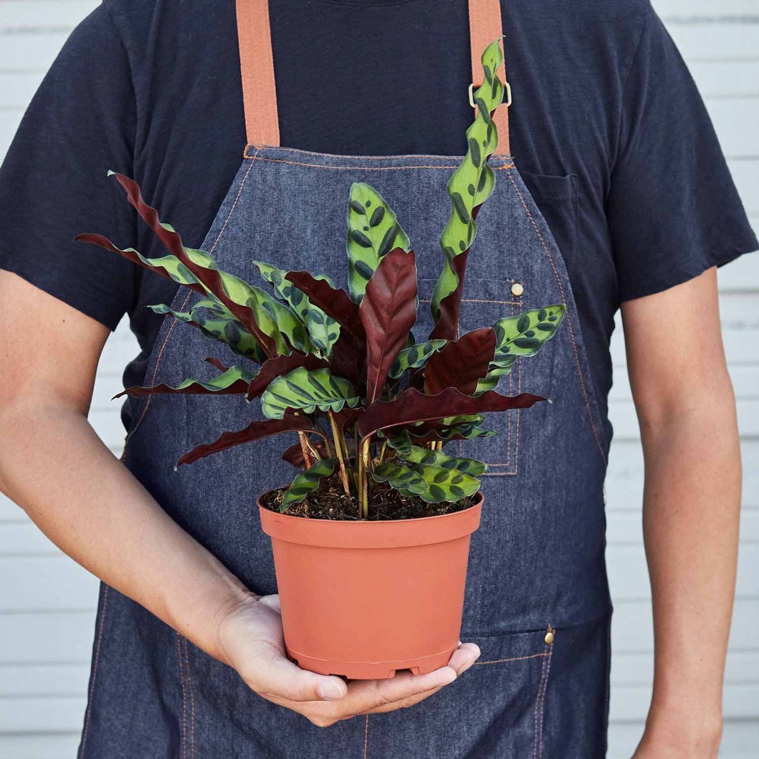 - Description: This Calathea Lancifolia also commonly called the Rattlesnake comes with dark green leaves that have unique ripples. Like all Calathea plants, the leaves adjust as the sun rotates throughout the day. Calathea Plants, native to tropical South and Central America, Africa, and the West Indies, are grown primarily for their beautiful, brightly colored, upright, oval leaves. Exhibits strappy, spotted leaves and deep purple undersides.