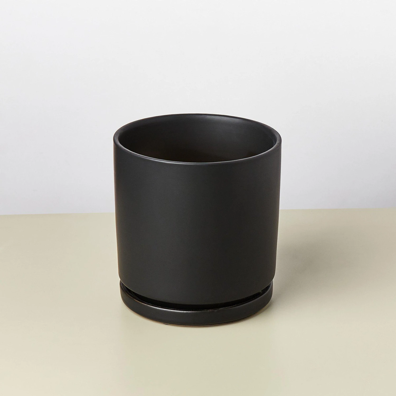 - Description: The ceramic cylinder planters have an attached saucer so your dont have to worry about your plant dripping water. The planters come in two colors in two sizes.¬â€
