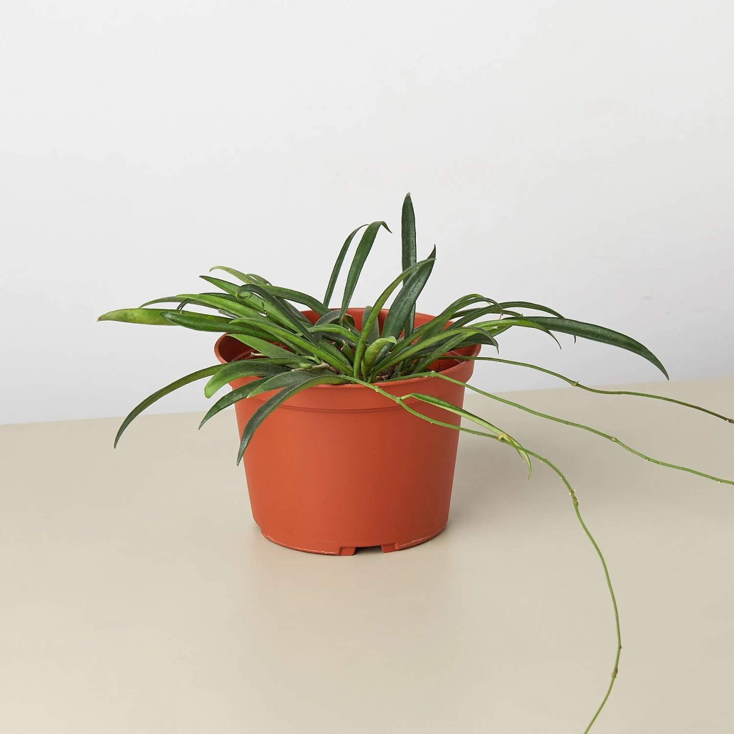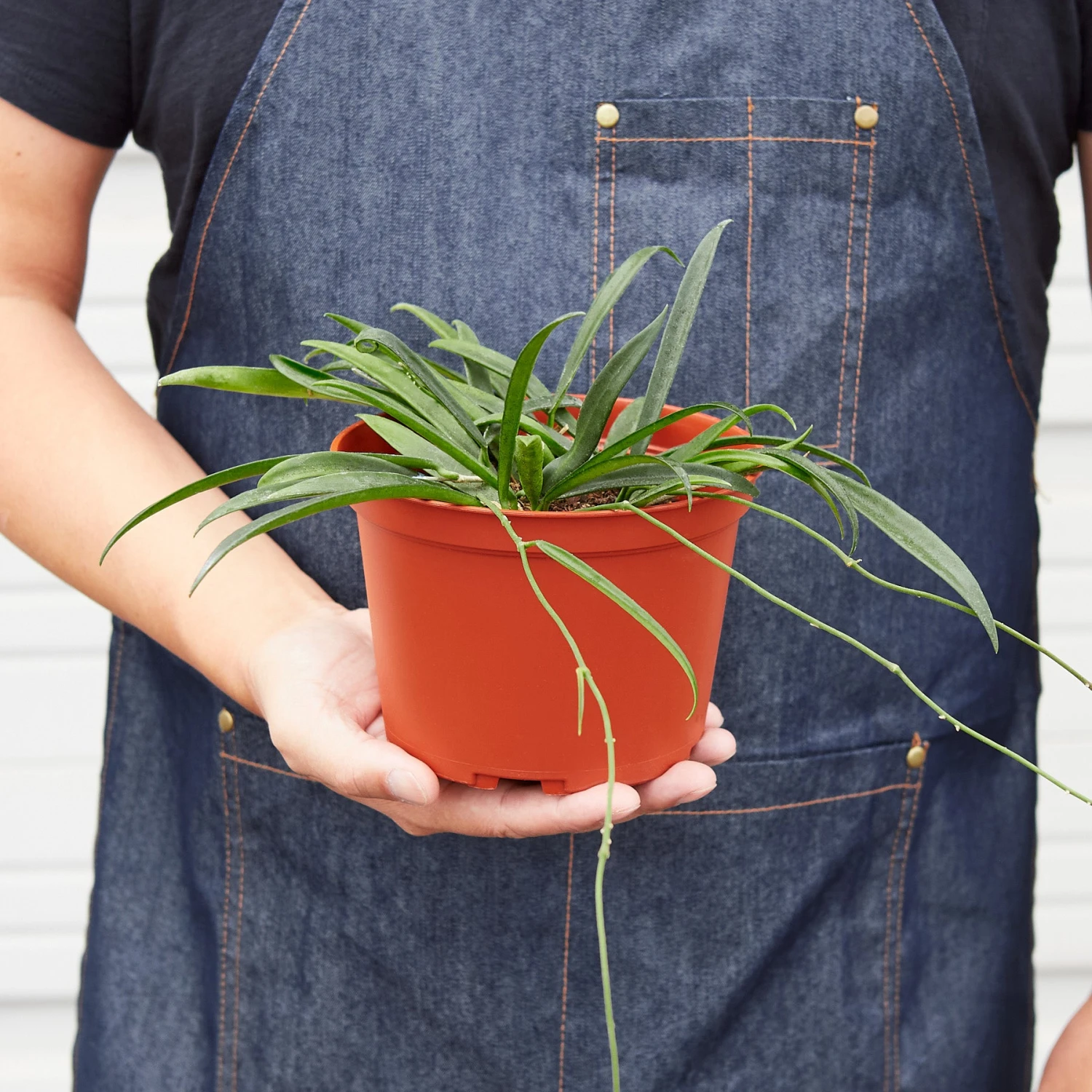 - Description: The String Bean Hoya produces 2-3″ wide clusters composed of sweetly fragrant 1/2″ wide white waxy star-shaped flowers with a small maroon eye. The long narrow deep green glossy foliage adorns the long trailing stems and give the plant its common due to their resemblance to string beans.