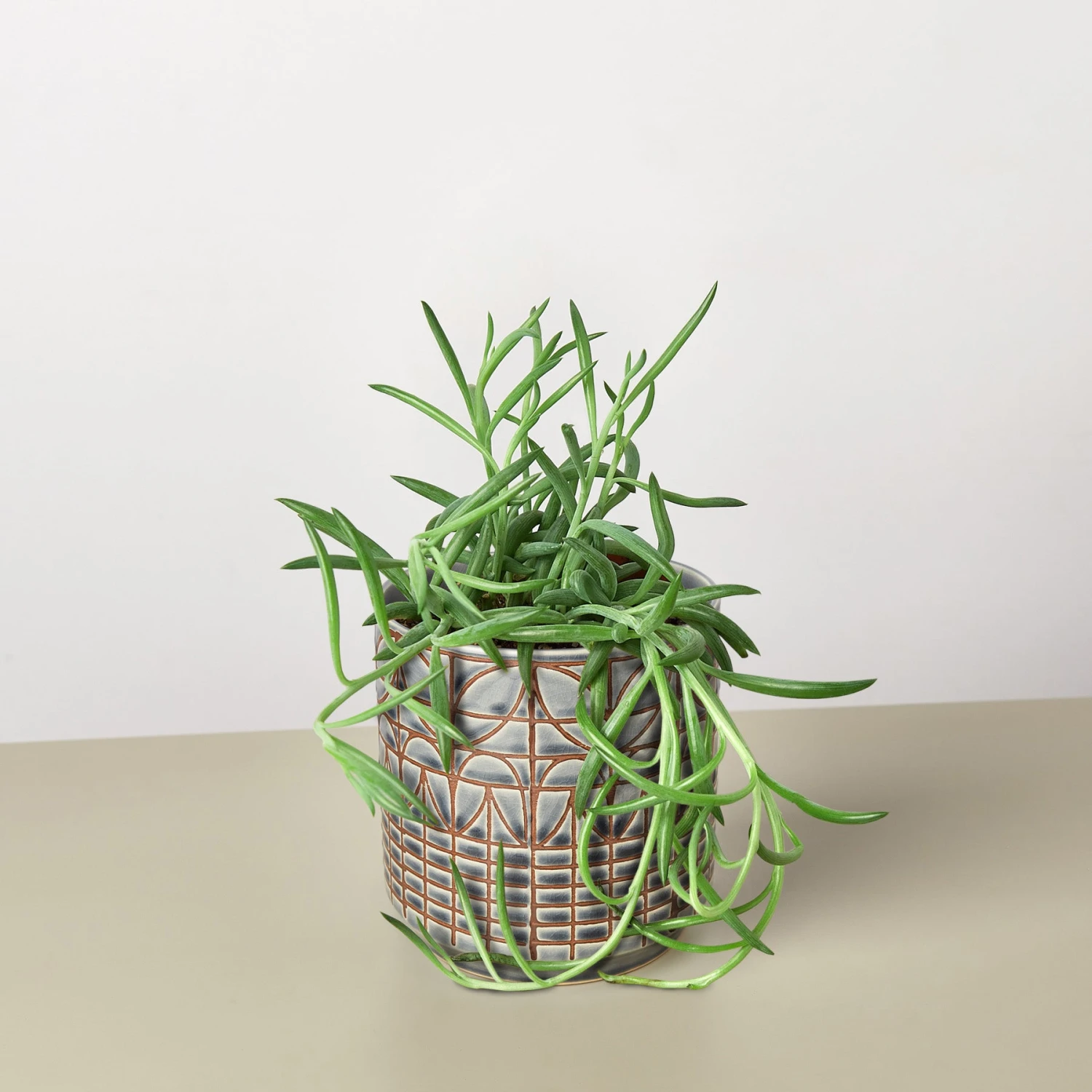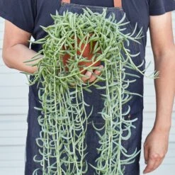 - Description: ÔªøThe Senecio Fish hooks is a trailing succulent which has curved, tube like foliage which grows along the vines of this plant. The color of the foliage can be anywhere from a washed out green to a greenish blue.