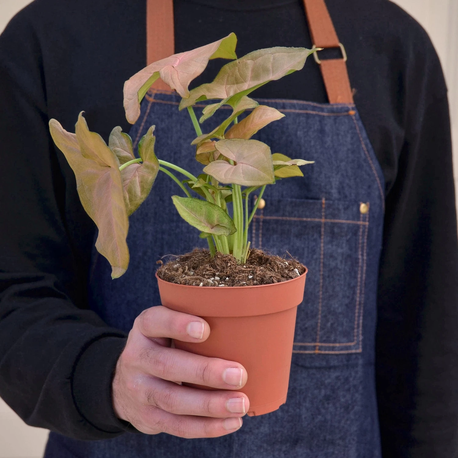 - Botanical Name: Syngonium podophyllum ‘Strawberry’