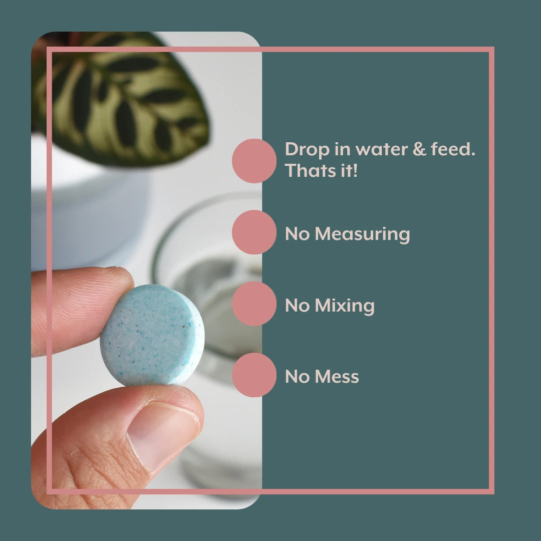 For feeding your collection of indoor plants. Our gentle 4-3-6 (N-P-K) Plant Food formula provides all the essential nutrients your indoor plants need along with trace micronutrients for a well-rounded plant diet. Our ProBiotics cultivate healthy, living soils with a specially crafted blend of 19 beneficial microbes including mycorrhizal fungi. This combination of Plant Food and ProBiotics promotes lush, healthy houseplant growth. The bubbling action of our tablets make them an easy, fun and climate-friendly way to feed your plants. EASY TO USE! No measuring, no mixing, no mess! Just drop in water and feed. Includes watering can.